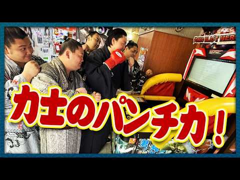企画が多めの伊勢ケ濱部屋。今回はパンチングマシーン対決です!いえーい!! 今回の参加者は柾富士さん、天照鵬さん、夢之富士さん、満富士さん、松井さんの5名です。最初は練習と言うことで、順番にどのぐらいの威力があるのか計測…